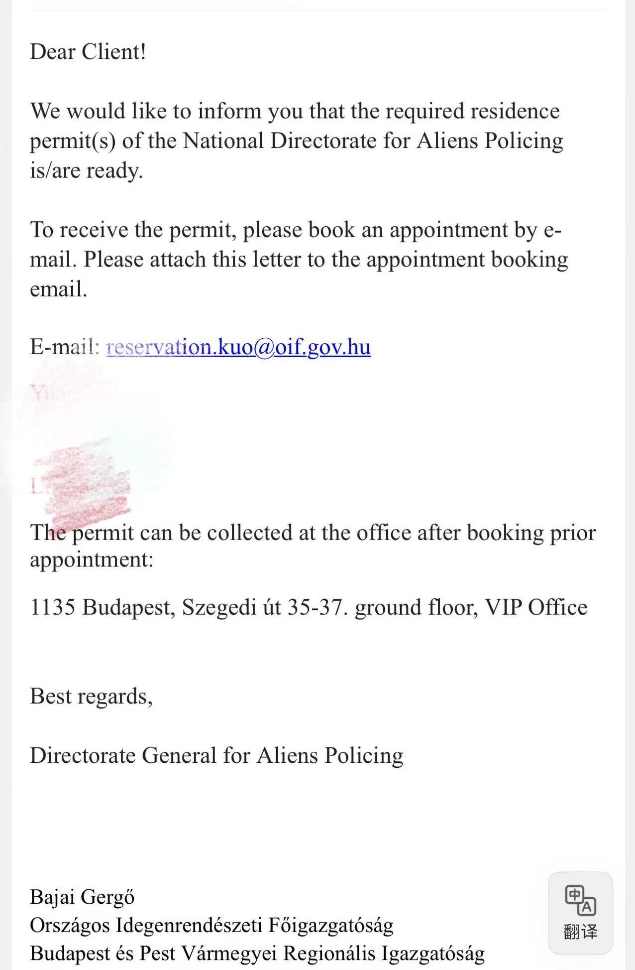 案例:2025年11月15日北京匈牙利签证中心递交